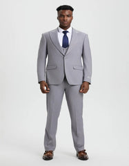 Light Grey Suit - Silver Gray Suit For Wedding - Men's Vested One Button Peak Lapel Stacy Adams Light Grey Designer Suit