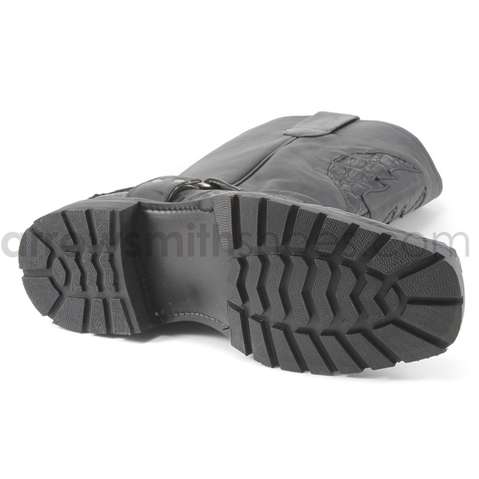 Los Altos Men's Black Genuine Caiman Leather Biker Boots