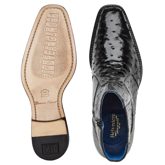 Men's Belvedere Roger Ostrich Quill Dress Boot in Black