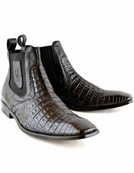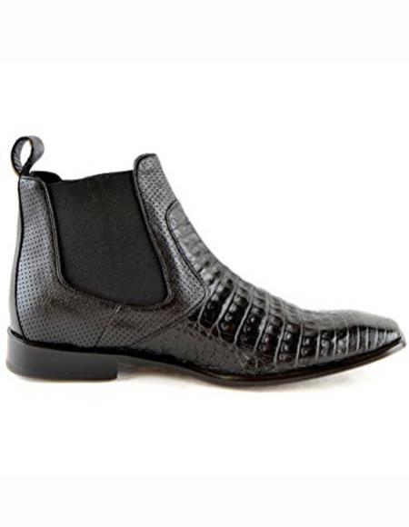 Men's Caiman Belly Skin Leather Square Toe Short Black Boots