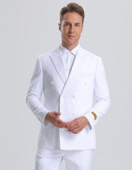 This double brasted seersucker suit comes with matching pants, in a modern fit. This summer classic has side vents and flat front pants.