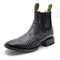 Wide Square Toe Teju Lizard Print - Cowhide Leather Genuine Leather Sole Color: Black Brand: El Besserro...