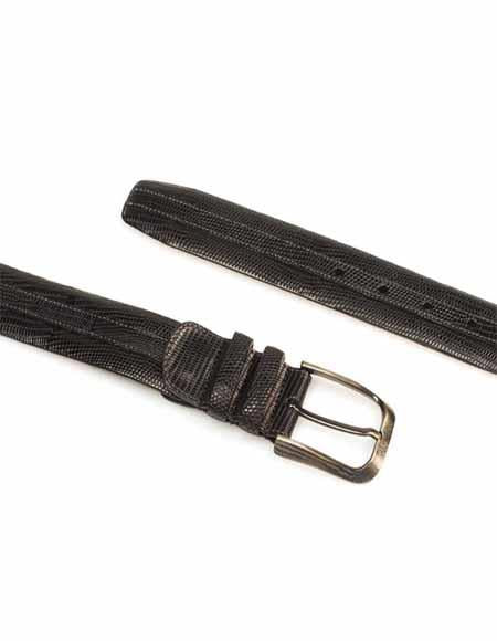 Genuine Lizard Hi-Quality Full Nubuck Backing Brushed Silver Buckle With Embossed Design Adjustable Color: Black