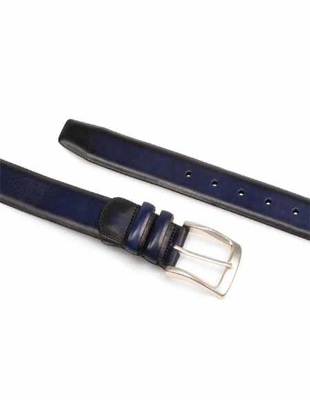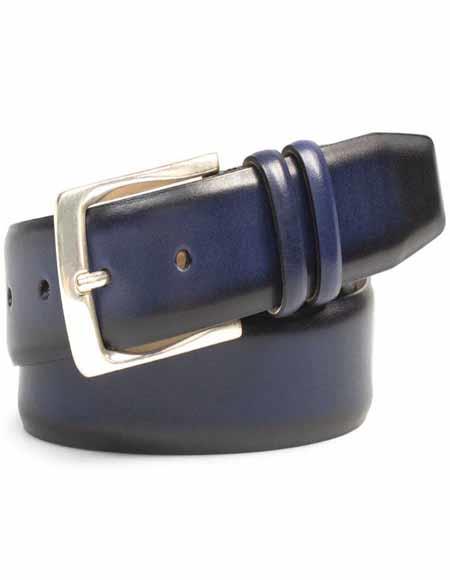 Dress-Casual Belt With Smooth, Hand-Burnished European Calf Leather Hi-Quality Full Nubuck Backing Hi-Shine Silver Buckle Color:  Blue...