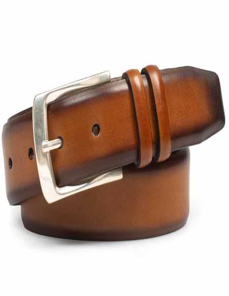 Dress-Casual Belt With Smooth, Hand-Burnished European Calf Leather Hi-Quality Full Nubuck Backing Hi-Shine Silver Buckle Color: Cognac...