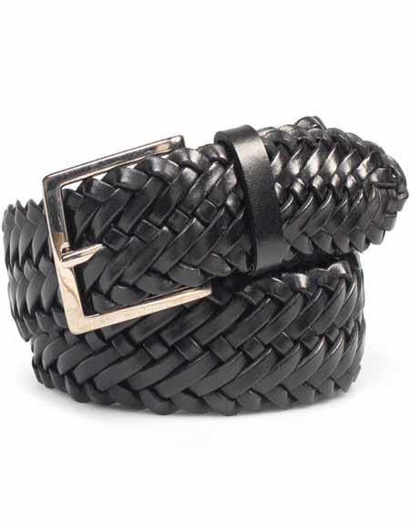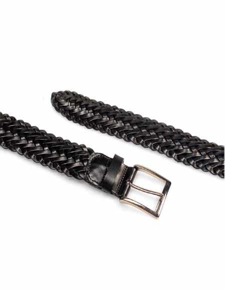 Hand-Woven, Hand-Burnished European Calfskin Belt Hi-Shine Silver Buckle Soft Leather Nubuck Backing Color: Black