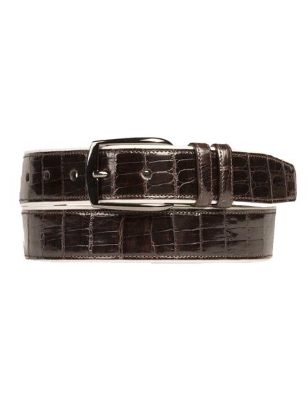 Mezlan Belts Brand Men's Genuine Crocodile / Calfskin Brown Skin Cinturon De Cocodrilo
