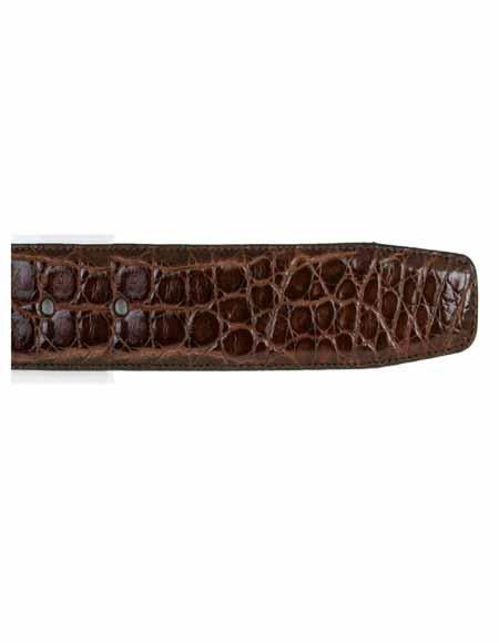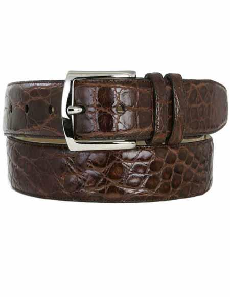 Genuine Full Body Crocodile Silver Finish Buckle Luxurious Italian Leather Backing Color: Brown
