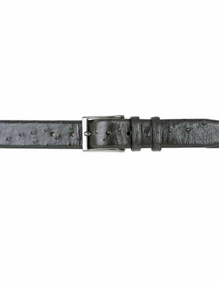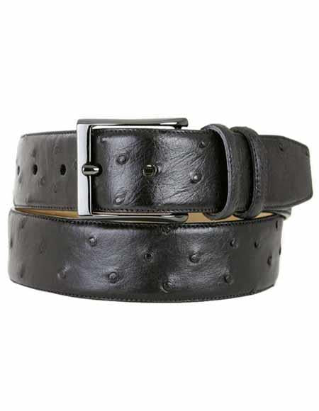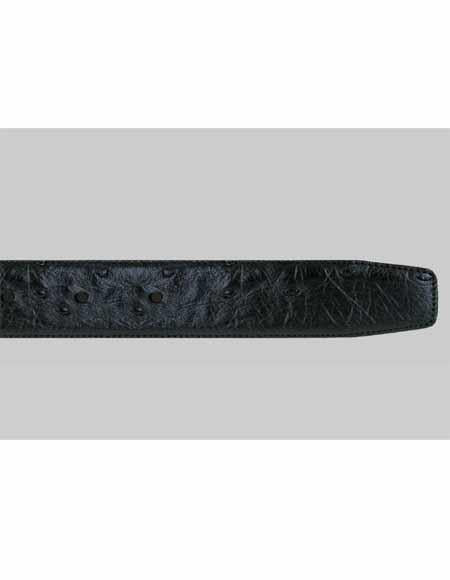 Genuine Ostrich Satin Platinum Buckle Soft Nubuck Backing Color: Black