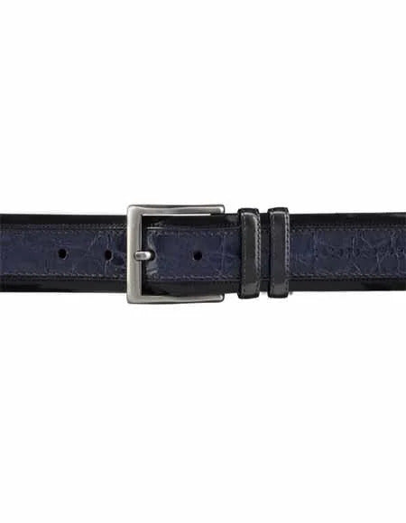 Genuine Crocodile Body Soft High Shine Cordovan Calf Trim Satin Nickle Buckle Handmade In Spain Color: Blue...