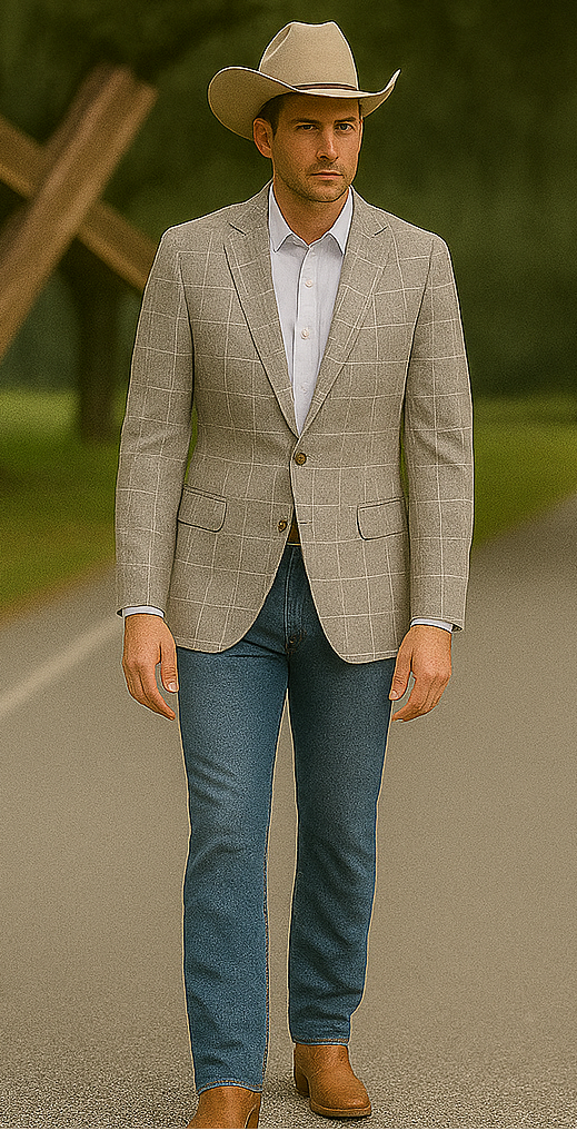 Saco vaquero - Western Sport Coat - Western Blazer- Men's Slim Fit Business Casual Summer Windowpane Plaid Suit In Light Tan