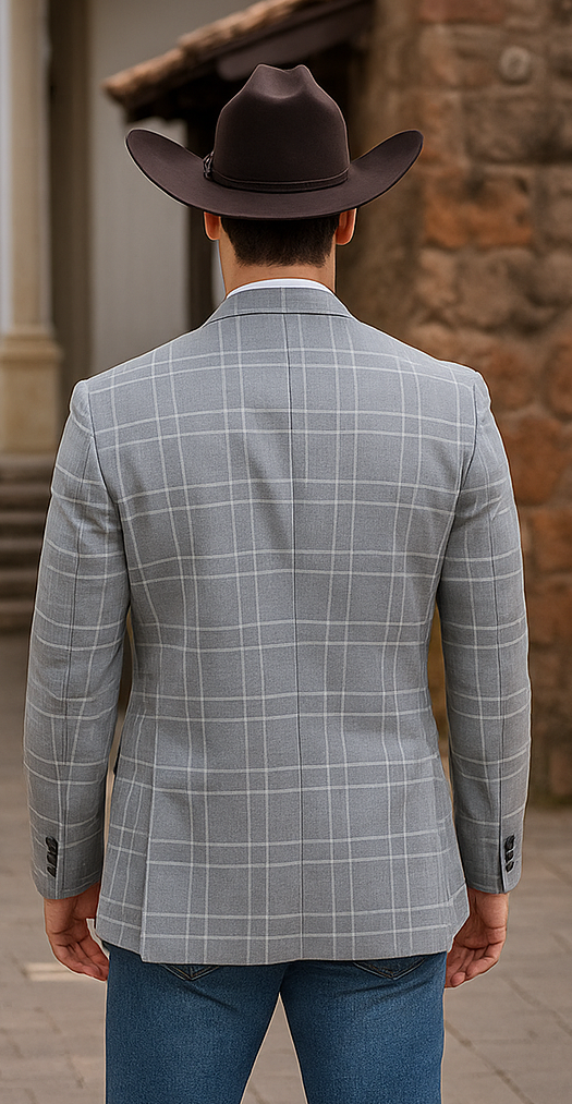 Saco vaquero - Western Sport Coat - Western Blazer - Men's Two Button Regular Fit Light Grey Double Windowpane Plaid Blazer