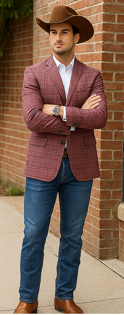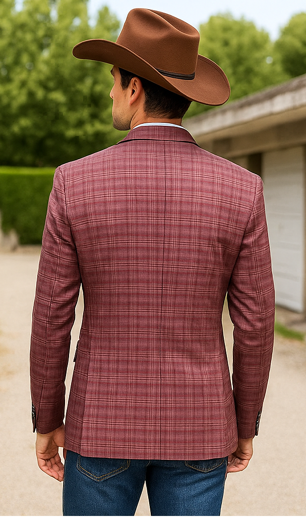 • Saco vaquero - Western Sport Coat - Western Blazer  -This 2 button blazer, sport coat is a slim fit, notch lapel, side vents, and comes in a windowpane glen plaid design.