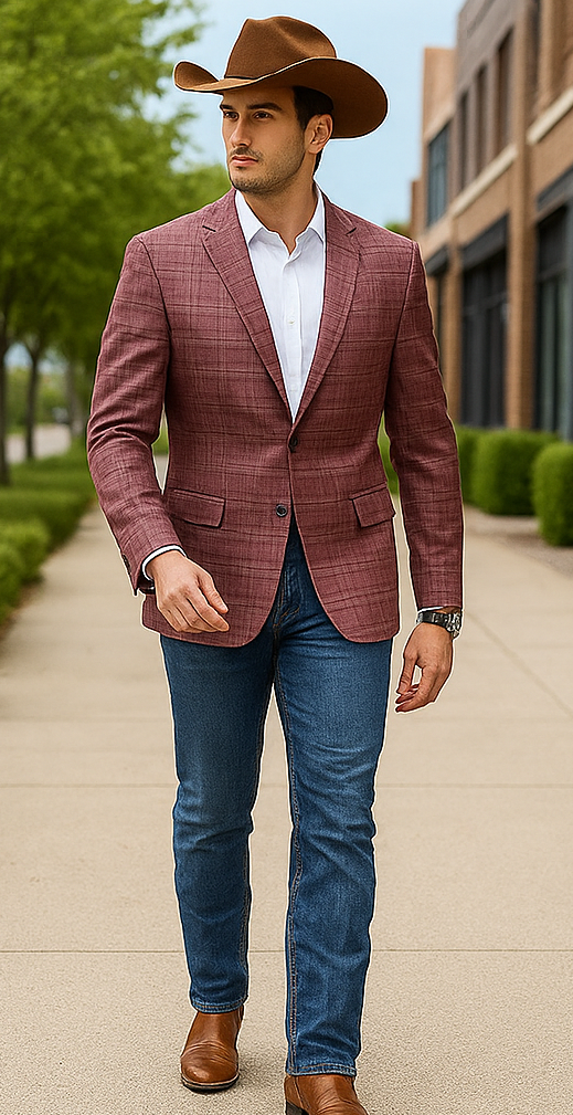 Saco vaquero - Western Sport Coat - Western Blazer  - Men's Two Button Regular Fit Windowpane Mauve Plaid Sport Coat Blazer