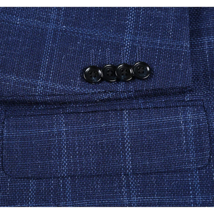 Sacos Vaqueros - Sacos Para Hombre - Mens Two Button Classic Fit Wool Sport Coat Blazer In Navy Blue Windowpane Plaid