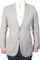 • This 2 button blazer features a notch lapel, side vents, and a houndstooth windowpane plaid fabric.