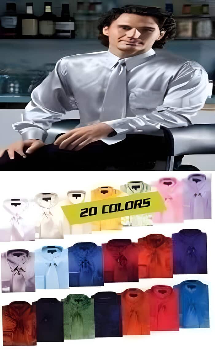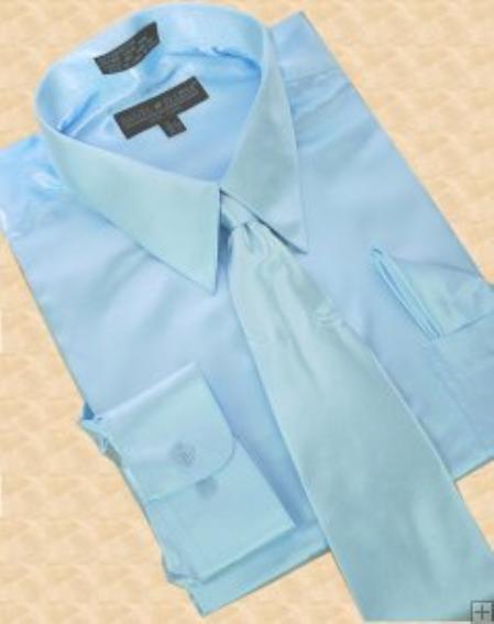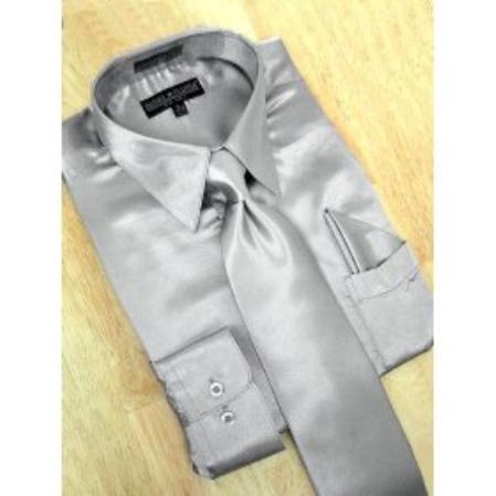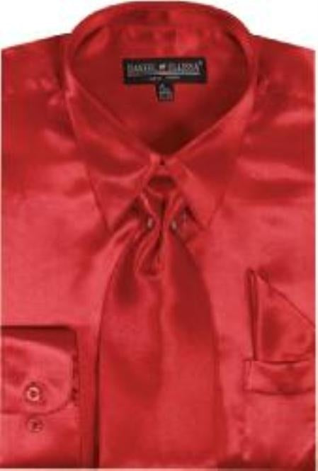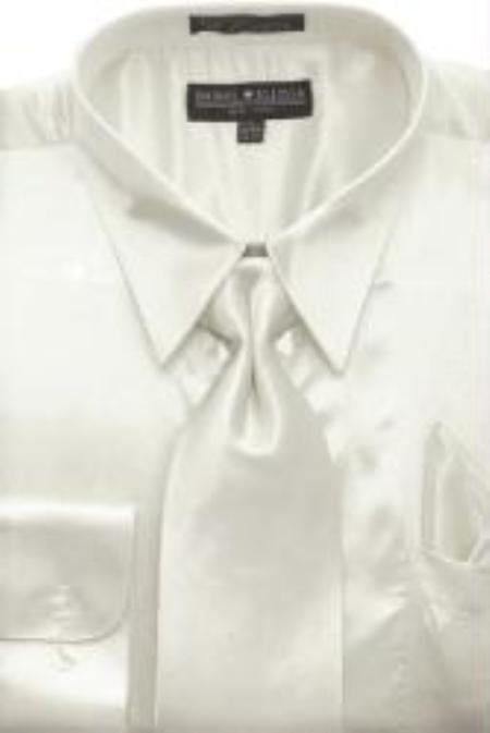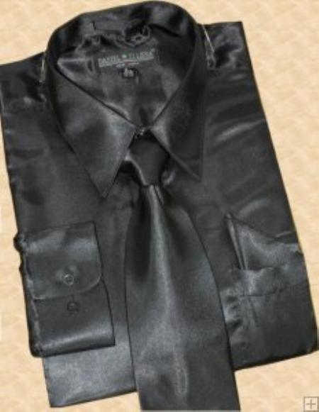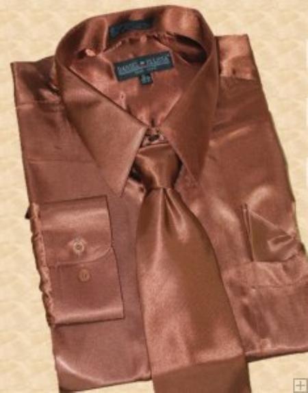 Brillante Sedoso Satín Vestir Camisa Con Pareo Corbata