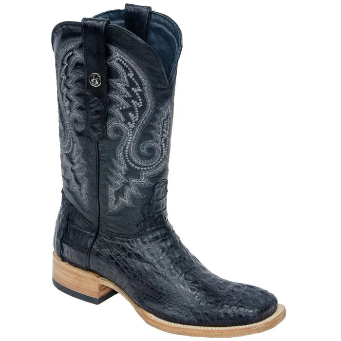 Men's Genuine Caiman Hornback Square Toe Boots Black