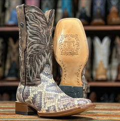 Color :NaturalTop:Tobacco StonewashHeel :Stockman HeelOutsole:LeatherToe: WideSquare ToeWidth:DVamp: RattlesnakePrintPull tabsCushion comfort insoleLeather liningWestern stitching14 Days Delivery