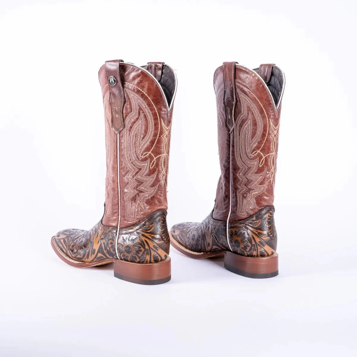 Tanner Mark Women's Jungle Hand Tooled Square Toe Leather Boots Brown
