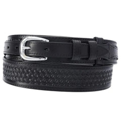 Modern leather belt with engraved designs. This fine western belt ranger style works with both casual and dress look, for men and women. Made in Mexico.