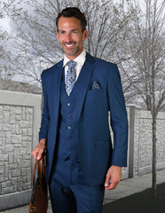 • Mens 2 Button Modern Fit Vested Wool Suit in French Blue