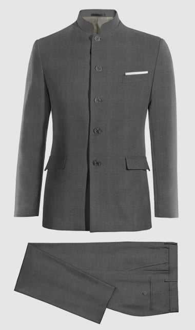 Mens One Button Wide Peak Lapel Vested Pleated Pant Suit in Charcoal Grey