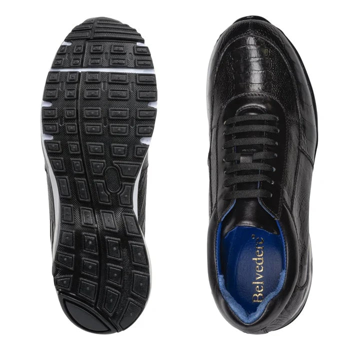 • Men's Belvedere Vasco Calf & Crocodile Hornback Tail Black Sneaker
