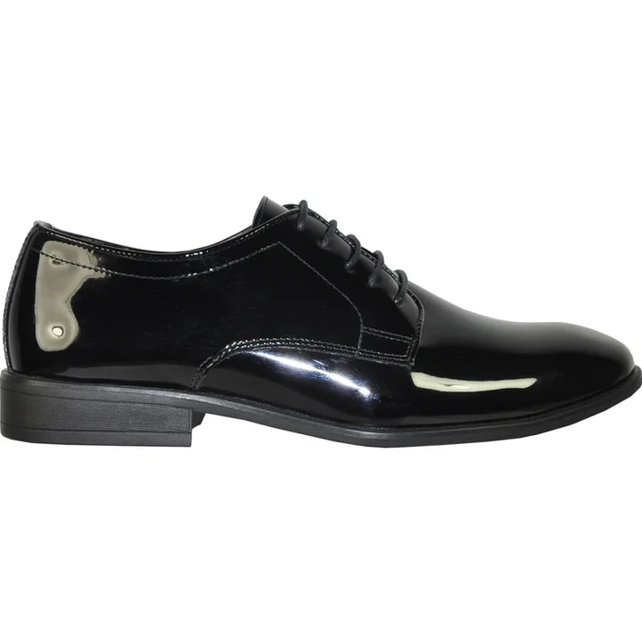 • Mens Classic Plain Toe Shiny Patent Black Tuxedo